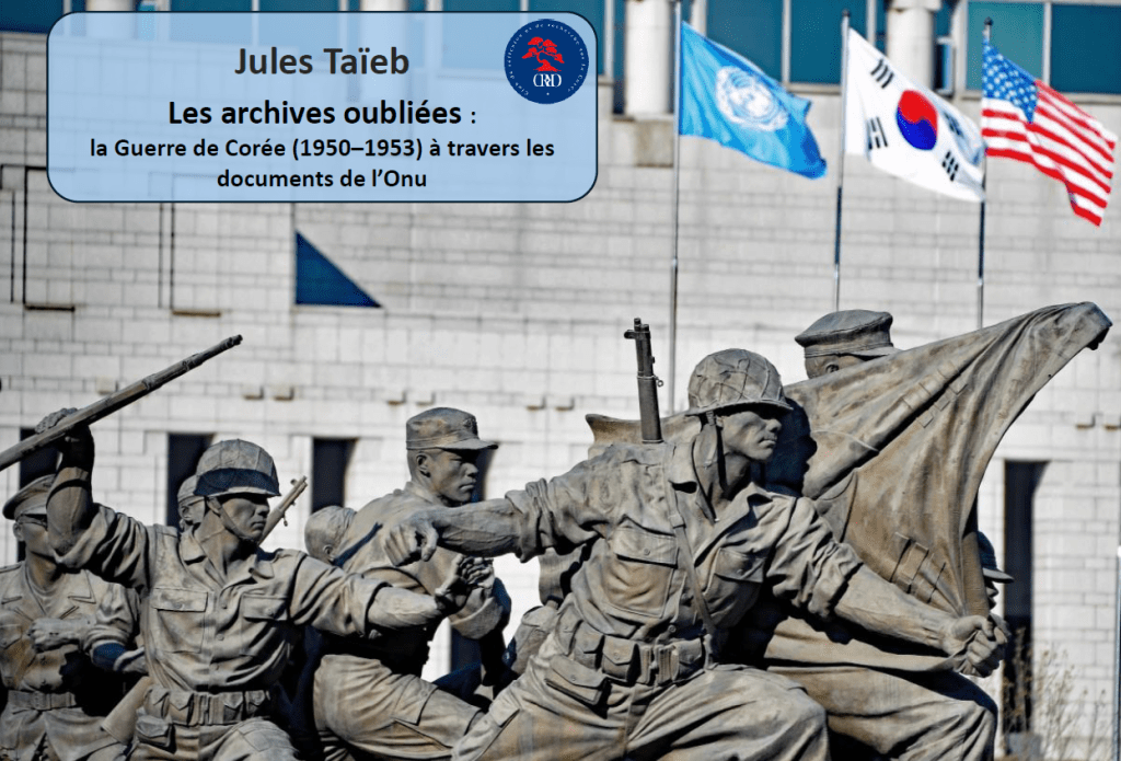 Les travaux en histoire, en science politique et en droit international ont rarement placé les sources des Nations unies au centre de l’analyse, les considérant souvent comme subsidiaires par rapport aux décisions prises par les grandes puissances. Dans le contexte de la guerre froide, l’attention s’est ainsi surtout portée sur les archives nationales (américaines, coréennes, soviétiques, et dans une moindre mesure chinoise) alimentant l’intérêt pour les révélations inédites de la Guerre de Corée. À rebours de cette tendance, cette présentation propose de replacer les archives onusiennes au cœur de la réflexion. Résolutions de l’Assemblée générale et du Conseil de sécurité, rapports officiels et débats internes sont examinés comme un corpus décisif pour comprendre les dynamiques politiques et juridiques de l’époque.